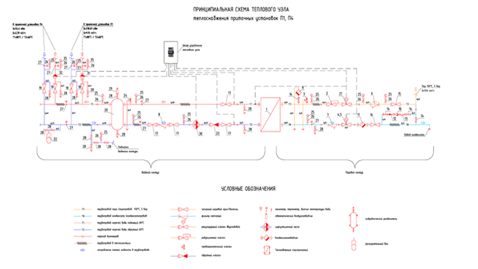 Тепловой пункт (пар-вода) реализован на запорно-регулировочной арматуре фирм: Spirax Sarco, АДЛ, БРОЕН, STOUT, Tecofi, РОСМА. Теплообменник фирмы ТЕПЛОТЕКС. Циркуляционные насосы IMP PUMPS. Шкаф управления на контроллере CAREL.